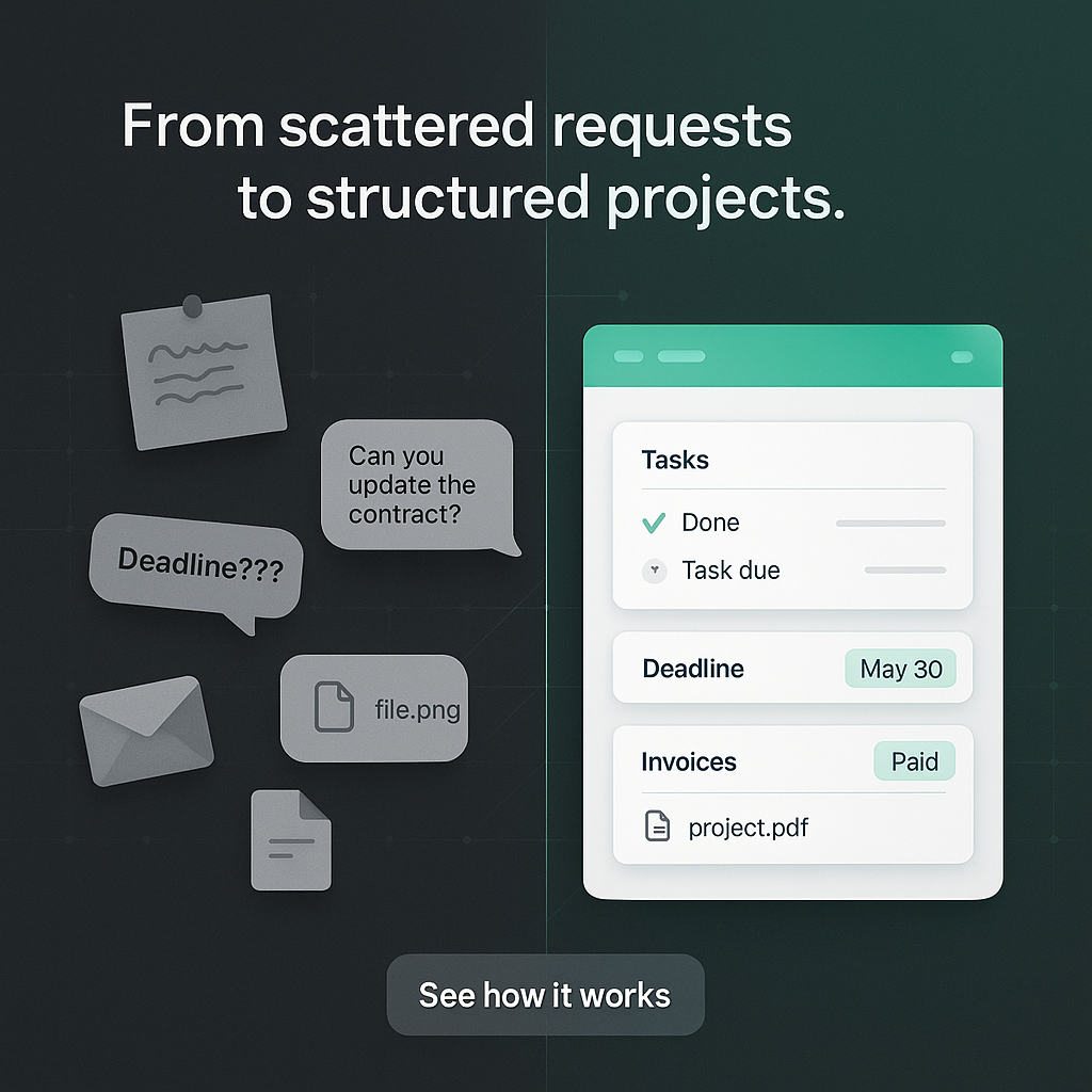 Juggling tasks in email, chasing clients in chat, and tracking invoices in spreadsheets slows you down. Briefly brings it all together in one clean workspace — so projects stay organized, deadlines stay clear, and clients always know what’s happening.