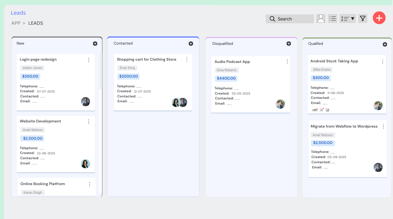 Send polished proposals, share upfront estimates, and track every lead until it becomes a client.